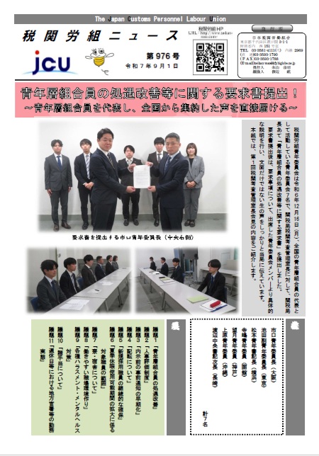 〇第1回税関考査管理室長会見 青年層組合員の処遇改善等に関する要求書を提出