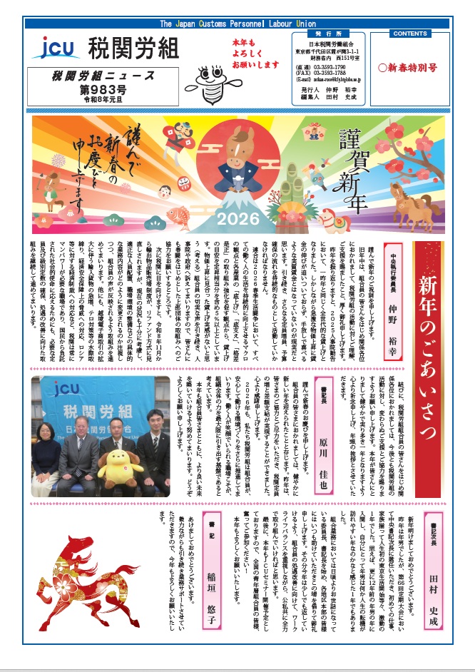 税関労組ニュース第983号を掲載しました。 ○新春特別号